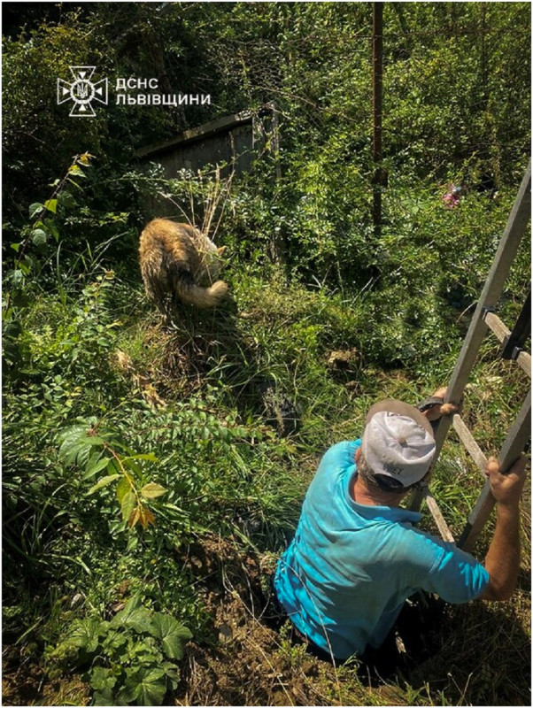У повідомленні йдеться: «Хоча чотирилапий спочатку не був надто радий увазі рятувальників, команда 5-ї державної пожежно-рятувальної частини м.Дрогобич, разом із власником за допомогою штурмової драбини витягнули собаку».