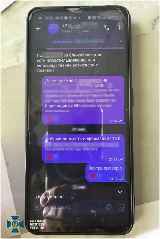Слідчі Служби безпеки повідомили фігуранту про підозру за ч. 3 ст. 114-2 Кримінального кодексу України (несанкціоноване поширення інформації про переміщення, рух або розташування ЗСУ за можливості їх ідентифікації на місцевості з метою надання такої інформації державі, що здійснює збройну агресію проти України).