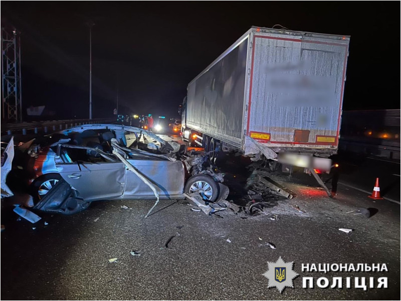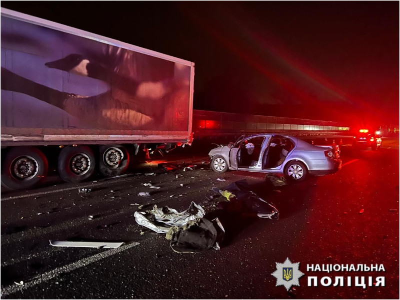 Попередньо правоохоронці встановили, що 29-річний водій Volkswagen, не вибрав безпечної швидкості, не впорався з керуванням та допустив зіткнення з вантажівкою Daff, яка стояла в другій смузі руху через повітряну тривогу.