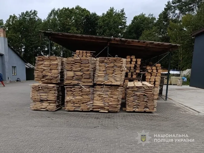 У ході слідчих дій вилучено десятки колод сосни та липи, сотні брусів, пиломатеріали, бензопили, інструменти, мішки з бирками, а також транспортні засоби та електроніку.