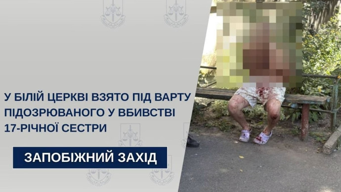 Білоцерківський міськрайонний суд обрав запобіжний захід для 25-річного чоловіка, підозрюваного у вбивстві рідної сестри. Його взяли під варту на 60 діб без можливості внесення застави, повідомила Київська обласна прокуратура.