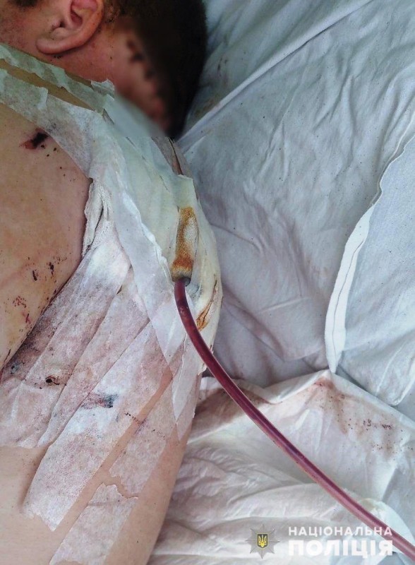 Пострадавший был госпитализирован с колото-резаными ранами нижней трети левой лопатки и задней поверхности шеи.