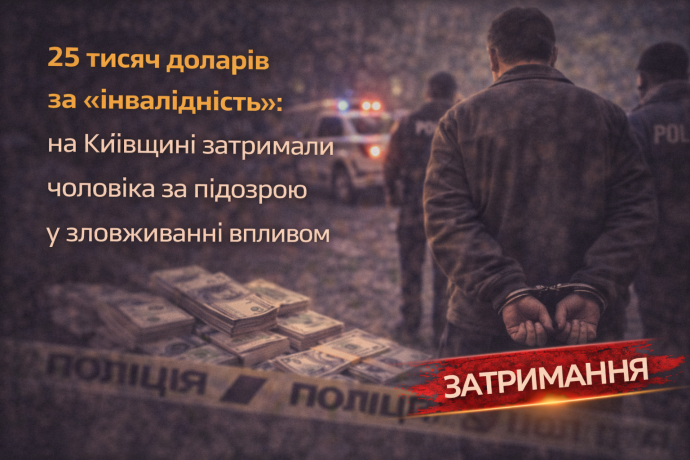 На Київщині правоохоронці затримали 30-річного чоловіка, який за 25 тисяч доларів обіцяв військовозобов’язаному оформити фіктивну інвалідність і зняти його з військового обліку.