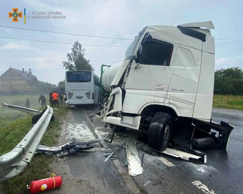 Вчера, 17 августа 2022 года, около 12:40 на участке трассы «Киев – Чоп», проходящем через село Нагорное Стрыйского района, произошло ДТП с участием двух грузовых автомобилей Volvoи пассажирского автобуса Mercedes.
