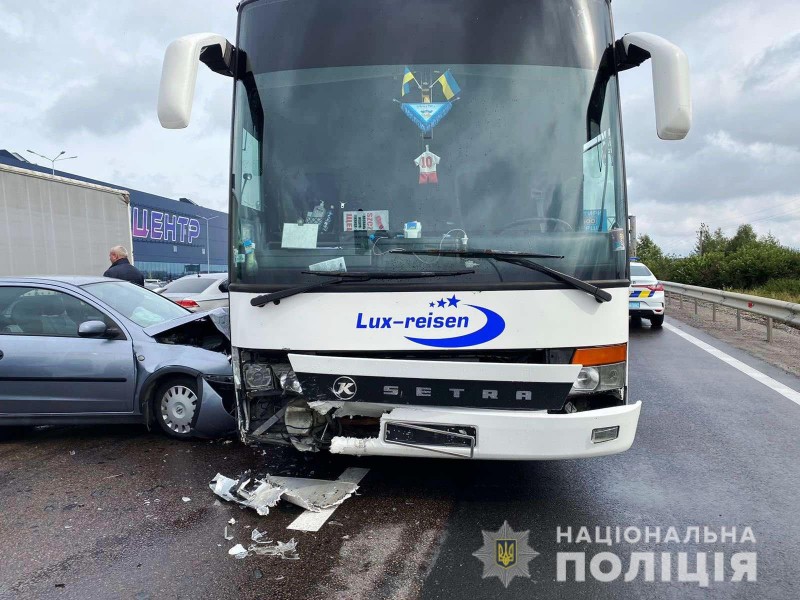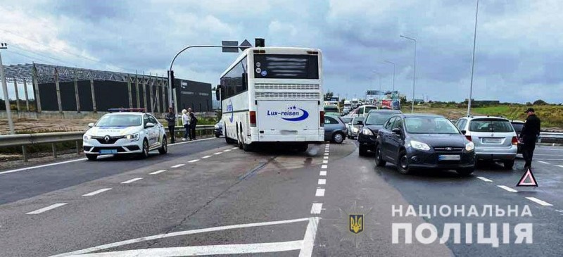 Вчера, 11 сентября 2022 года, около 13:30 на участке автодороги «Западный обход г. Львова», проходящем через село Сокольники Львовского района, произошло ДТП с участием автомобилей Volkswagen Golf, Opel Corsa, KIA Sportage, Jeep Grand Cherokee и автобуса Setra.