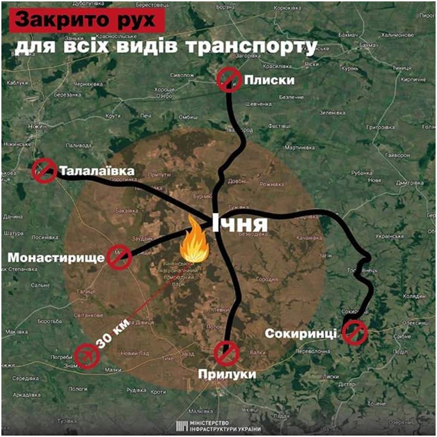 Закрыт проезд к Плиски, Талалаевка, Монастырище, Прилуки, Сокиринци и другим населенным пунктам в радиусе 30 км.