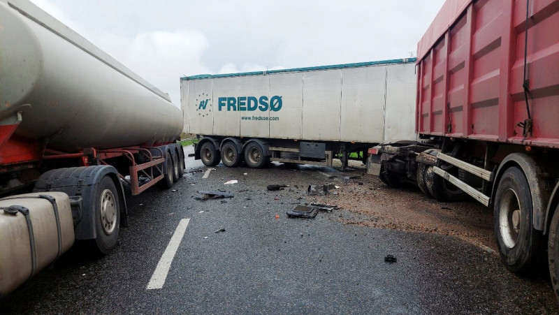 Як повідомляють джерела, водій вантажівки DAF не дотримався безпечної дистанції та допустив зіткнення з вантажним автомобілем Scania, що рухався у попутному напрямку, після чого виїхав на зустрічну смугу руху, де відбулося зіткнення з третім вантажним автомобілем.