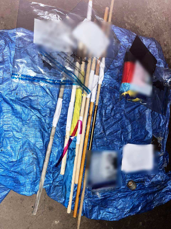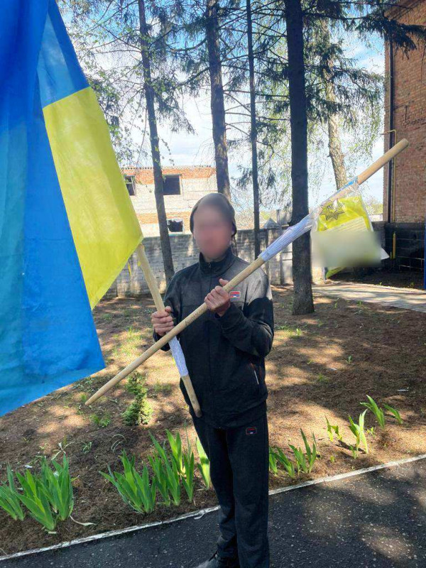 Правопорушника було затримано відповідно до статті 208 КПК України. Речові докази – державні прапори України та флагштоки були вилучені.