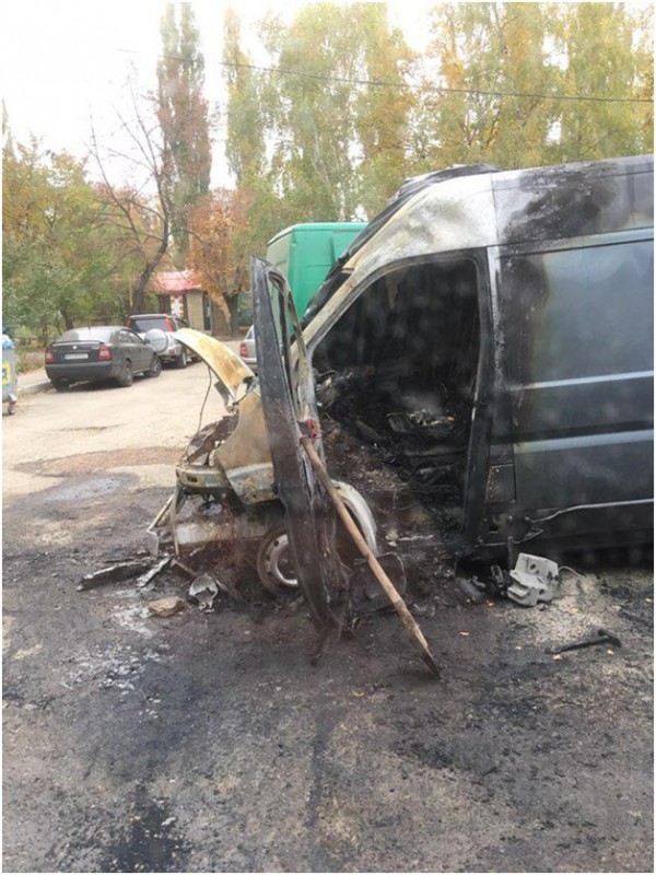 Ночью в Харькове сожгли микроавтобус