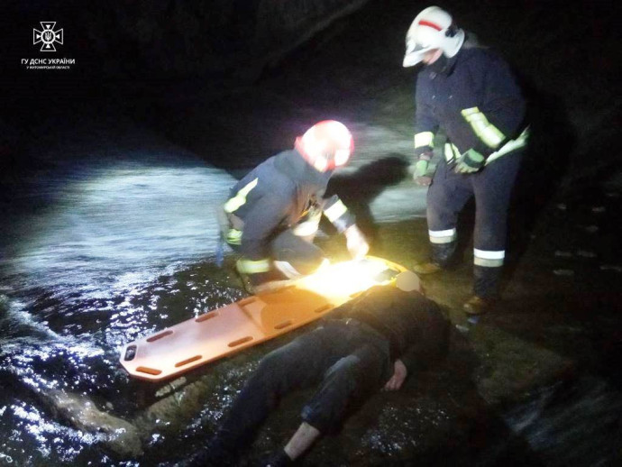 Чоловіка, особу якого встановлюють правоохоронці, підняли на ношах нагору та передали медикам для госпіталізації. Медики оцінюють стан пацієнта як важкий.