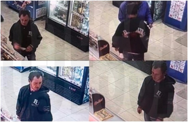Был одет: в черную спортивную куртку с белой надписью на спине, светлые джинсы и серые кроссовки.
