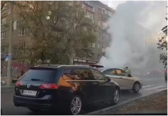 В Киеве на ходу загорелся автомобиль. Появилось видео