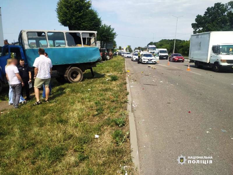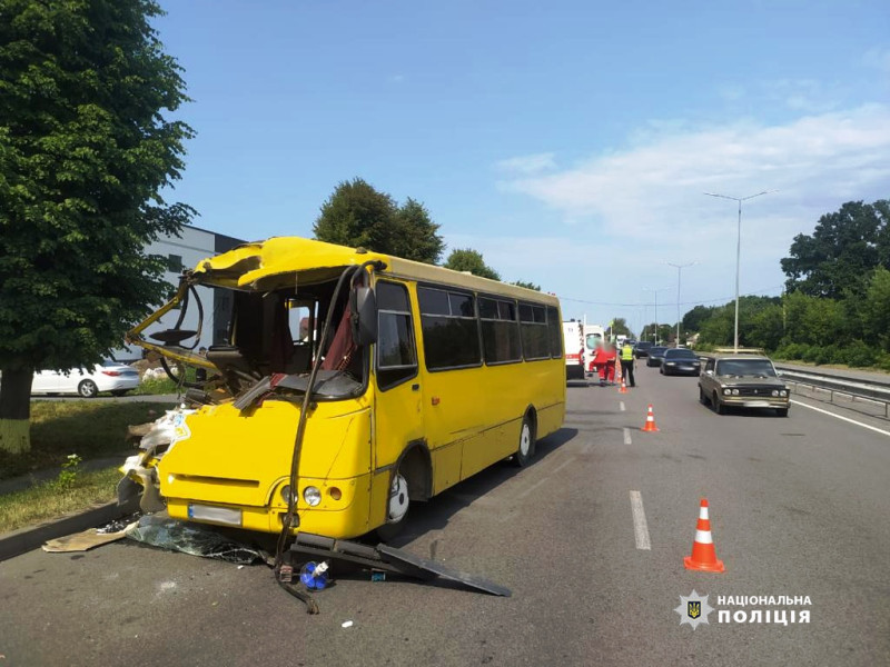 Як повідомляють джерела, попередньо встановлено, що водій пасажирського автобусу приміського сполучення допустив зіткнення з вантажівкою, яка знаходилась біля правого узбіччя.