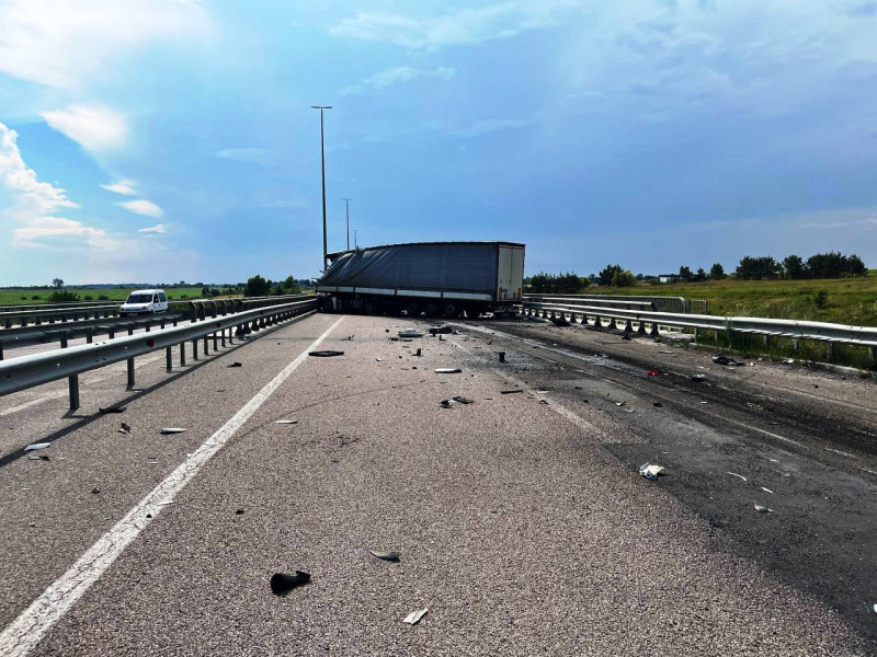 Сьогодні, 2 липня 2023 року, близько 16:00 на ділянці автошляху «Київ – Чоп», яка проходить неподалік від села Жадківка Рівненського району, сталась ДТП за участі двох вантажних автомобілів.