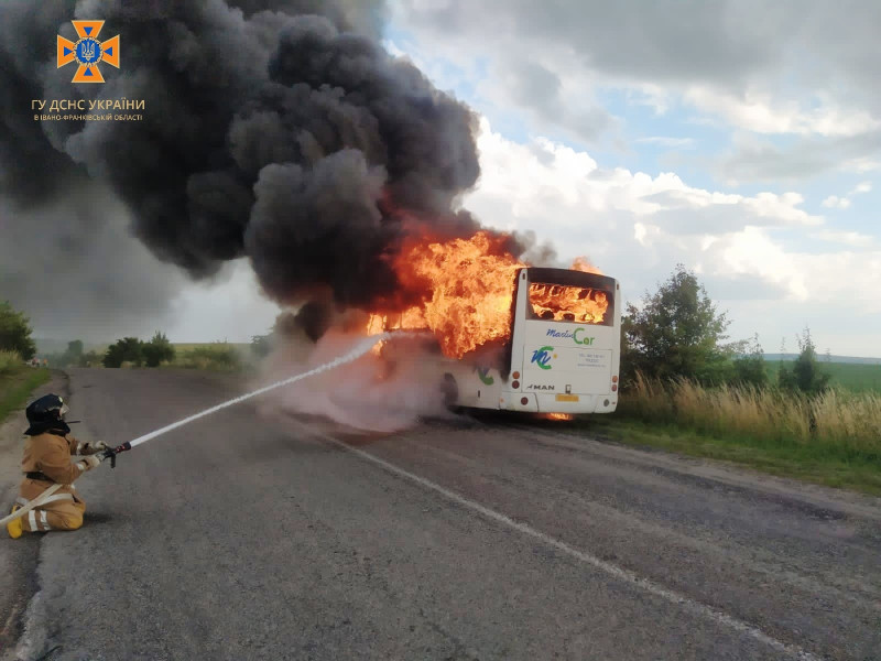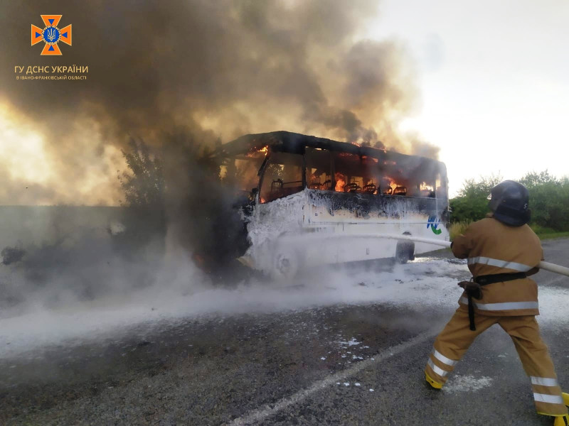 Вчора, 4 липня 2023 року, близько 18:47 на спецлінію «101» надійшла інформація про пожежу у пасажирському автобусі на ділянці автошляху «Снятин – Тязів», яка проходить між населеними пунктами Тарасівка та Грушка.