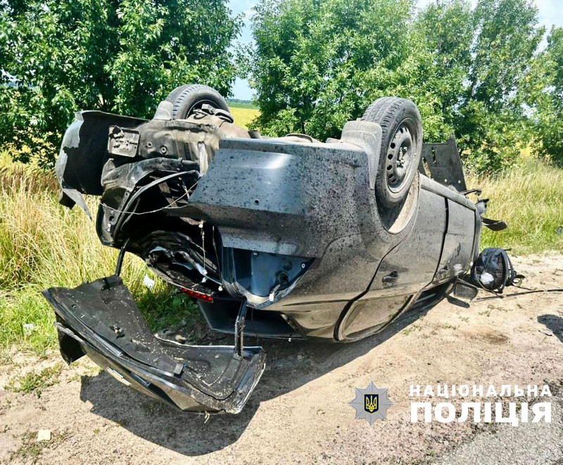 Як повідомляють джерела, воді автомобіля не впорався з керуванням, внаслідок чого транспортний засіб зіткнувся з відбійником та перекинувся.