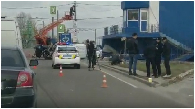 Под Киевом автомобиль врезался в пост дорожной полиции. Появилось видео