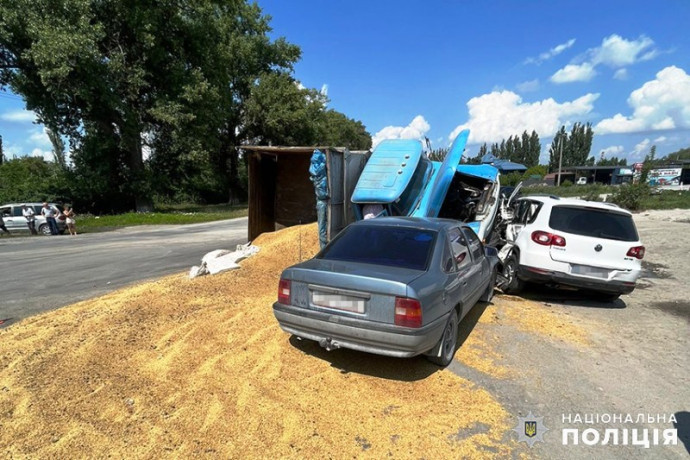 Як повідомляють джерела, з невстановленої на даний момент причини сталось зіткнення автомобіля Volkswagenта вантажівки. Від удару вантажний автомобіль перекинувся та пошкодив автомобіль Opel.