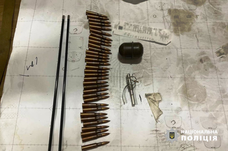 Під час проведення санкціонованого обшуку у приміщенні СТО були виявлені, вилучені та направлені на експертизу, зокрема, набої різного калібру, предмет, ззовні схожий на пістолет часів Великої вітчизняної війни, запал типу УЗРГМ, корпус гранати РГД-5 та ін.