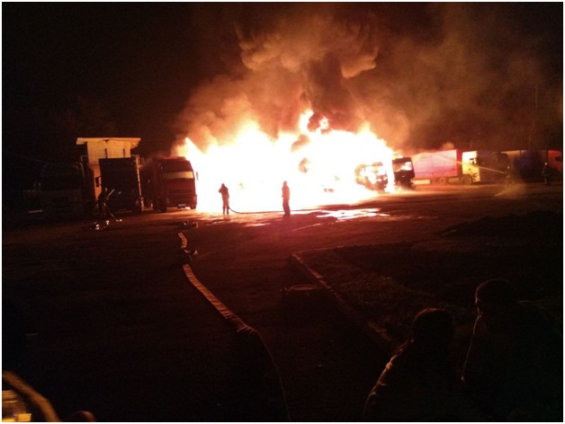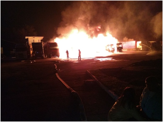 Как сообщает источник, сегодня в ночное время в Чернигове на парковке, расположенной на проспекте Мира 235-б, загорелись 4 автомобиля. Среди горящих авто были 2 большегрузные фуры – одна с дубовыми досками, другая — с моторным маслом Mobil. Кроме того, сгорел припаркованный рядом легковой автомобиль Chevrolet Lacetti и поврежден грузовой автомобиль Volvo FH12 с прицепом Tirsan.