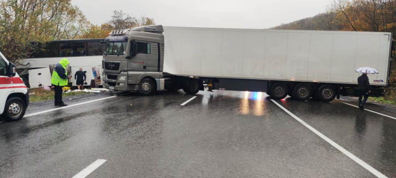 Як повідомляють джерела, водій вантажного автомобіля не впорався з керуванням на спуску, що призвело до зіткнення з пасажирським автобусом, в якому перебувало дванадцять пасажирів.