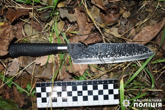 Під час встановлення обставин інциденту на вулиці біля домоволодіння 40-річний кривдник заявниці кинув одного з поліцейських ножа та поцілив у верхню частину спини над бронежилетом.