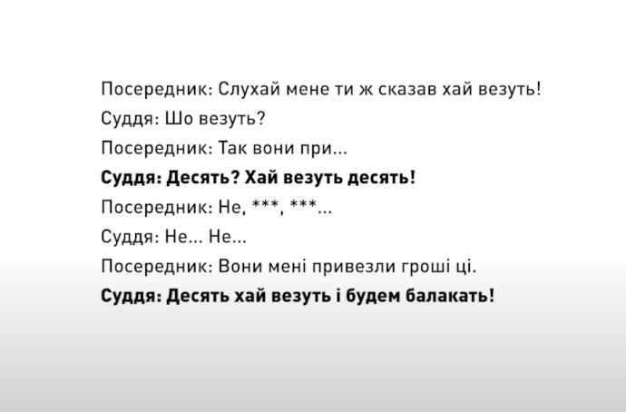 Дії посередника кваліфікувалися за ч. 5 ст. 27 та ч. 3 ст. 368 Кримінального кодексу України. Матеріали щодо нього виділено в окреме кримінальне провадження, яке завершилося винесенням обвинувального вироку судом.
