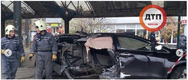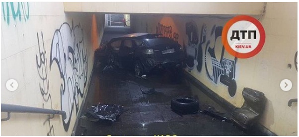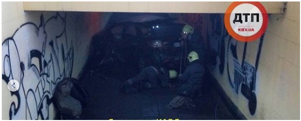 В Киеве в подземный переход въехал автомобиль и залил всё бензином