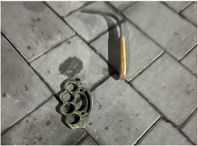 Під час проведення поверхневої перевірки в громадянина було виявлено кастет та кухонний ніж. На місце події викликано СОГ відділення поліції №1 Берегівського районного відділу поліції ГУНП в Закарпатській області, забезпечено охорону місця події.
