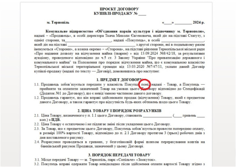У оголошенні є фото тварини, дозвіл на розміщення оголошення та договір з покупцем у разі успішного продажу цапа, якого в договорі вказали як…«поні».
