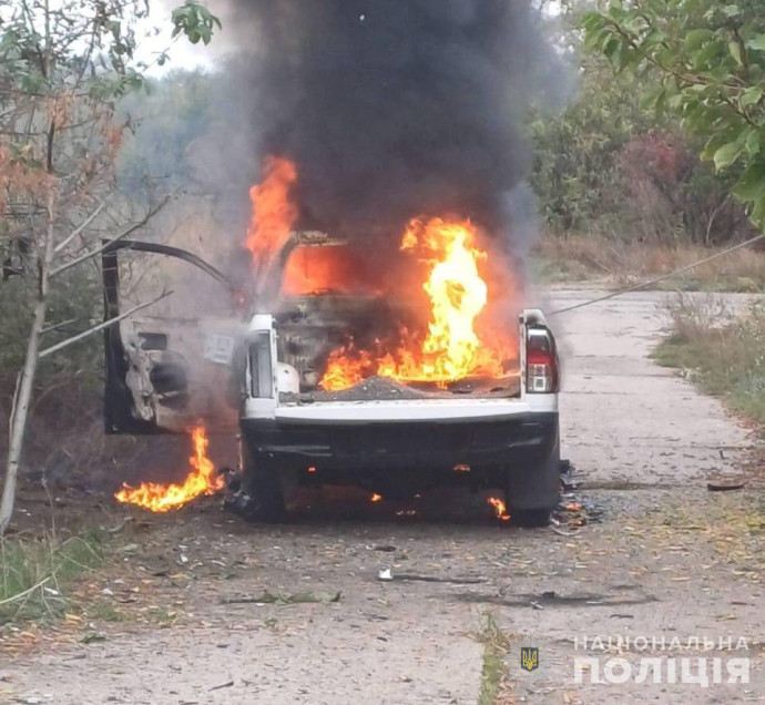 Вчора о 17:00 в одному із сіл Марганецької громади почався ворожий обстріл, який тривав близько 2 годин. Окупанти цілили з артилерії та дронів по місцю, де стояв службовий автомобіль вибухотехніків. Машина зазнала значних пошкоджень, а потім вигоріла вщент. Правоохоронці укрилися від ворожих снарядів спочатку у лісосмузі, а після їм вдалося переміститися до укриття.