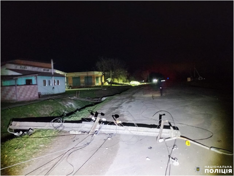 Слідчи слідчого управління встановив, що водій автомобіля «Infiniti», 22-річний житель села Жадківка, не впорався з керування, врізався в бетонну електроопору, а потім — злетів у кювет.