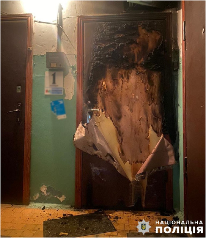 Поліцейські в ході першочерговий оперативних заходів встановили, що до правопорушення причетний 37-річний місцевий мешканець, знайомий потерпілого через особисту неприязнь вирішив помститися – він облив двері займистою рідиною і підпалив їх.