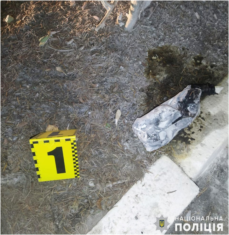 З місця події та у фігурантів поліцейські вилучили пляшку з легкозаймистою рідиною, телефони та інші речі, що мають доказове значення.