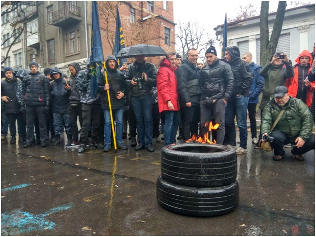 Как сообщают источники, сегодня в утреннее время в Харькове возле здания консульства РФ активисты, около 50 человек, провели акцию протеста из-за провокационных действий ВМС РФ в отношении кораблей ВМС ВСУ.