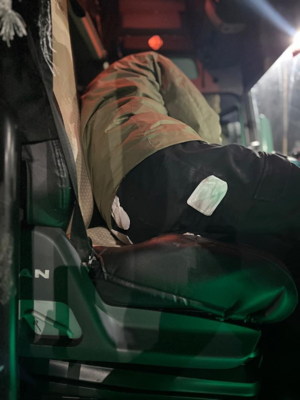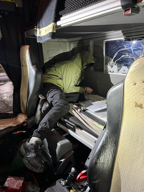 34-річний житель Шептицького району Львівщини, аби уникнути процедури прикордонного контролю, сховався під вантажівкою MAN, а щоб не змерзнути, наліпив на себе грілки. Зачаївшись та дочекавшись моменту, після огляду прикордонниками кабіни та перевірки документів водія, чоловік вискочив з-під причепа та намагався прослизнути в кабіну вантажівки. Проте прикордонники помітили спритника та затримали.