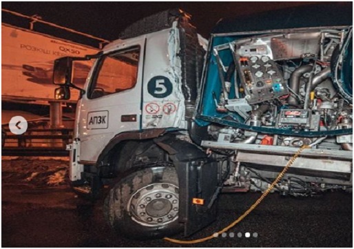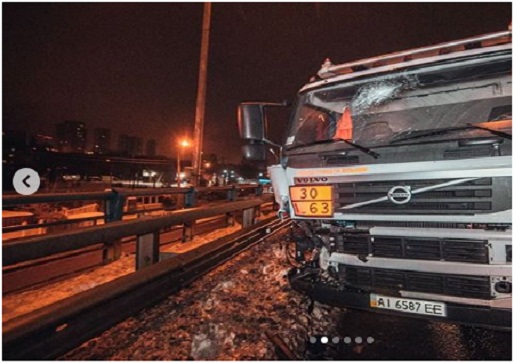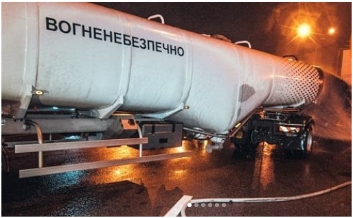 Как сообщают источники, сегодня в ночное время около 00:35, в Киеве, на Столичном шоссе в районе Корчеватого, крупнотоннажный бензовоз Volvo сильно занесло. Бензовоз врезался в отбойник. От удара пробило бак бензовоза, в то время, как цистерна не повреждена. Из бака на дорогу вылилось топливо. Цистерна перегородила две из трех доступных полос движения.