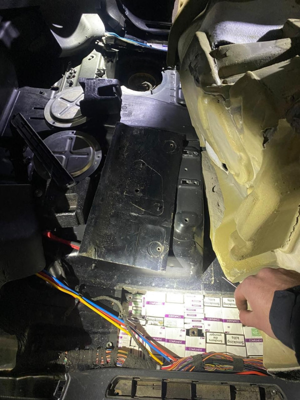 Під час огляду автівки закарпатця, у конструктивних порожнинах під задніми сидіннями, прикордонники виявили 1220 пачок тютюнових виробів без акцизних марок.