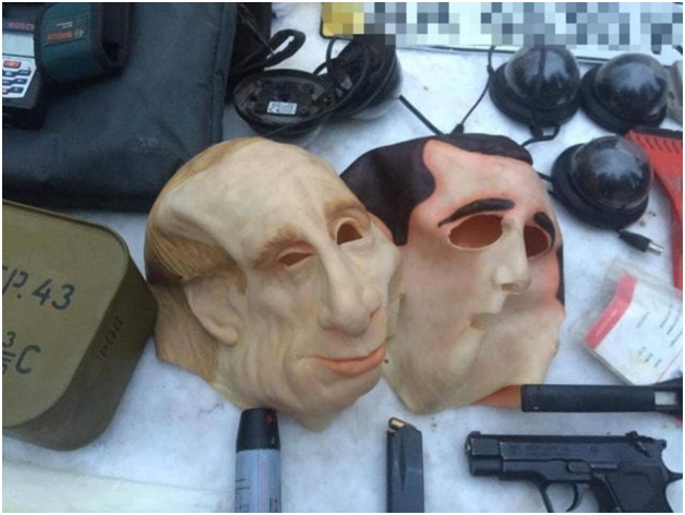 В настоящее время правоохранители проводят обыски по пяти киевским адресам. На местах обысков изъято оружие, взрывные устройства, патроны, военная форма, государственные автомобильные номера, нашивки и шевроны. Особое внимание полицейских привлекли маски российского президента Владимира Путина, которые тоже были в арсенале грабителей.
