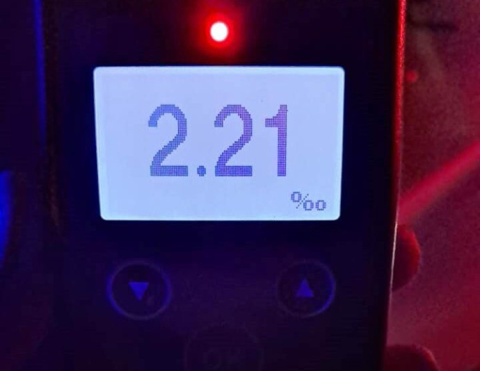 У 36-річного кермувальника були явні ознаки сп’яніння. Перевірка на Драгері показала 2,21 проміле алкоголю в крові — це у 11 разів перевищує допустиму норму.