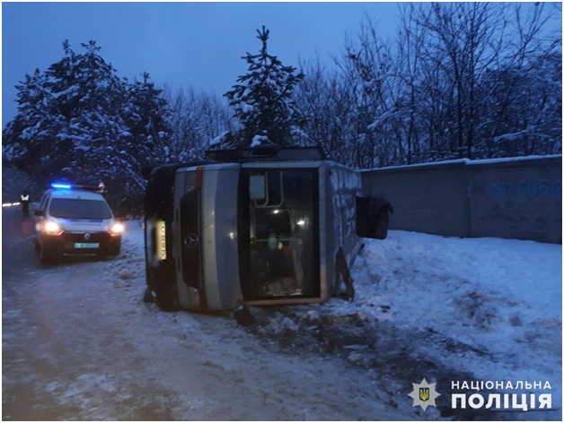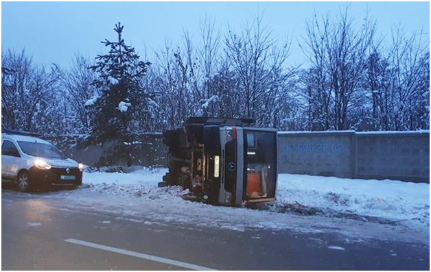 Как сообщают источники, сегодня в утреннее время, около 07:00, под Киевом, в районе села Плюты, на трассе Киев-Обухов водитель маршрутного автобуса Mercedes-Benz из-за гололеда не справился с управлением. В результате автобус опрокинулся.