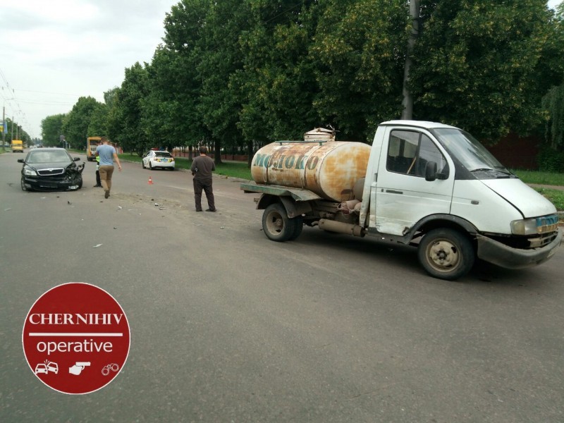 В Чернигове «Шкода» столкнулась с молоковозом из-за того, что водителю стало плохо. Фото