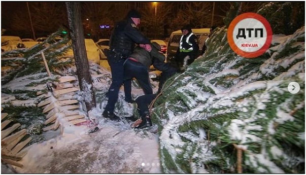 В Киеве в ночное время возле одного из елочных базаров двое мужчин пытались украсть елку с елочного базара, а потом дрались с хозяином базара на ножах и топорах. Вот что стало известно изданию «Криминал»