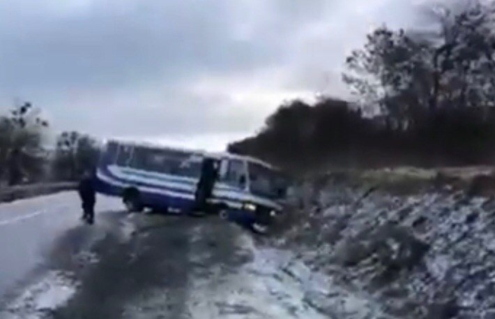 Как сообщают источники, сегодня в утреннее время, около 09:00, на трассе Львов-Тернополь, в Злочевском районе, в районе села Ясеновцы маршрутный автобус, водитель которого не справился с управлением на скользкой дороге, съехал в кювет.