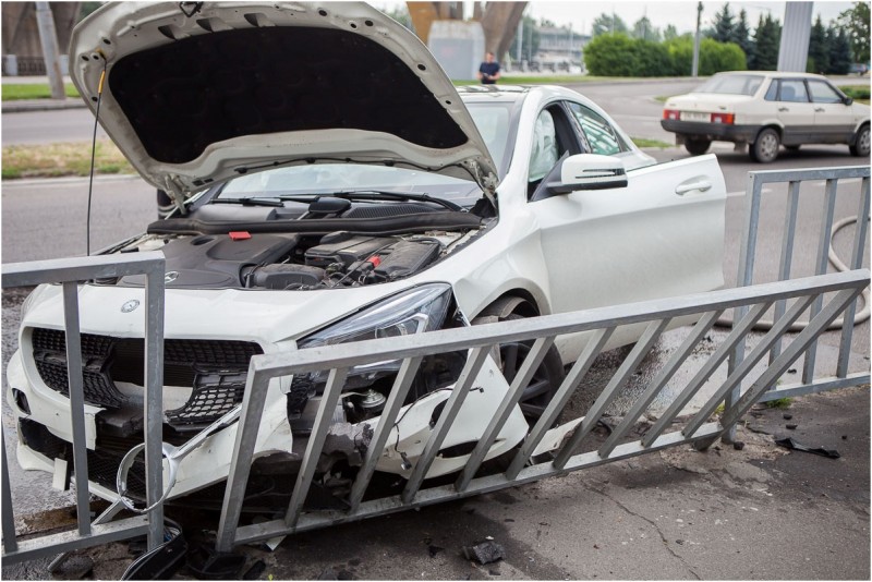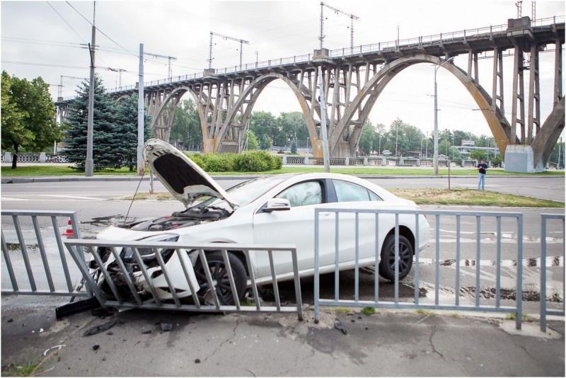 Как сообщают источники, сегодня в Днепре, около 5:30 в Днепре, на улице Набережной, поблизости от Мерефо-Херсонского моста Mercedes влетел в ограждение. По словам водителя, которого спасли подушки безопасности, автомобиль подрезал Chevrolet черного цвета. Выполнить другой маневр у водителя не было возможности и он вывернул руль влево, в результате чего врезался в ограждение. Скорость движения Mercedes на момент столкновения была около 50 км/час. Трое из четверых пассажиров, находившиеся в автомобиле, теперь находятся в городской больнице №16.