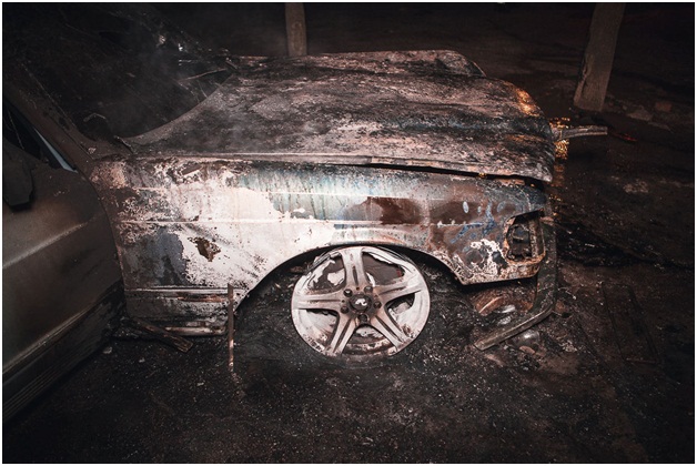 В автомобиле сгорела передняя часть. К счастью, обошлось без человеческих жертв.