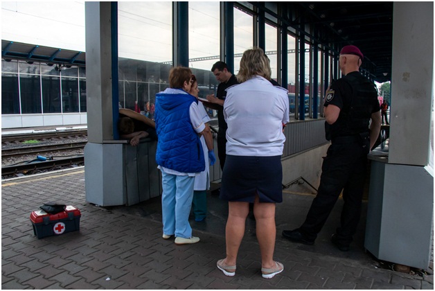 Как сообщают источники, сегодня, 6 июня 2019 года, в утреннее время, около 05:30, на центральном железнодорожном вокзале Киева патрульные обратили внимание на мужчину 40-45 лет, который долго и неподвижно сидит на парапете подземного перехода. Прохожие подтвердили, что мужчина уже давно так сидит.