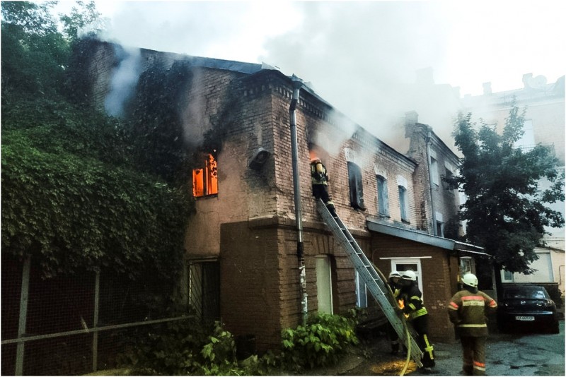 Как сообщают источники, сегодня, 25 июня 2019 года, в утреннее время, около 04:00, на улице Рейтарской, 9 в Киеве горело двухэтажное здание старой постройки. Известно, что в здании находились офисные помещения.