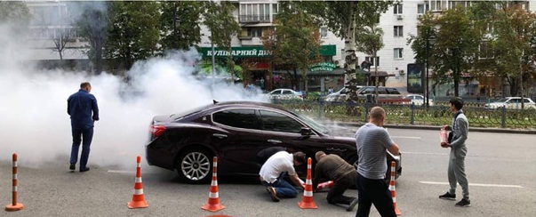 Как сообщают источники, сегодня, 10 июля 2019 года, в дневное время, около 15:00, в Киеве на бульваре Леси Украинки загорелся легковой автомобиль Maserati Quattroporte.