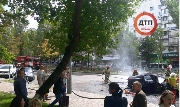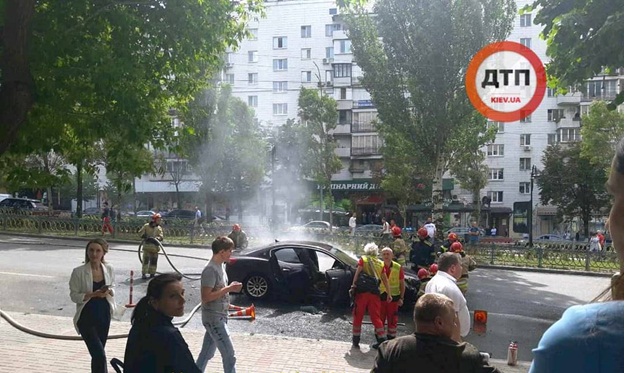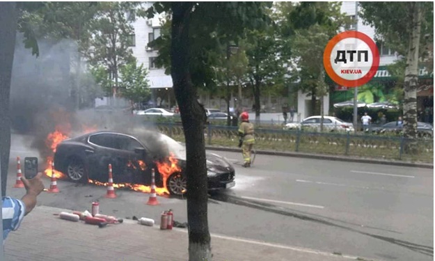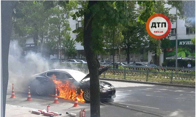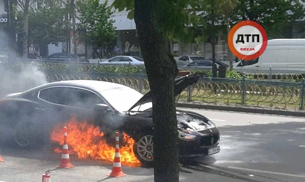 В Киеве на бульваре Леси Украинки загорелся Maserati. Появилось видео